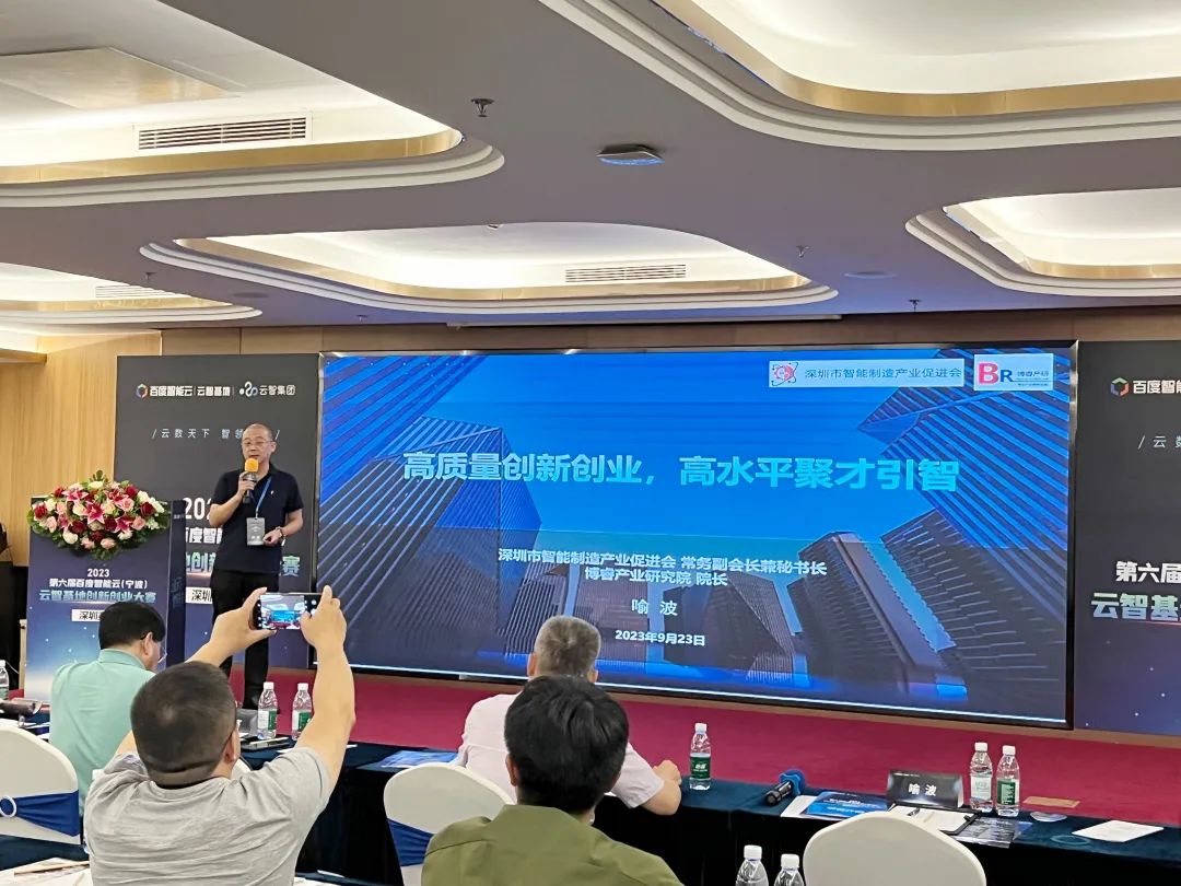 深圳博睿产业研究院院长、深圳市智能制造产业促进会常务副会长兼秘书长喻波,受邀出任评委,并做“高质量创新创业,高水平聚才引智”主题分享。