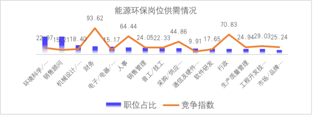 能源环保岗位则集中在专业对口的环境科学/环保、销售顾问、机械设计/制造等岗位;